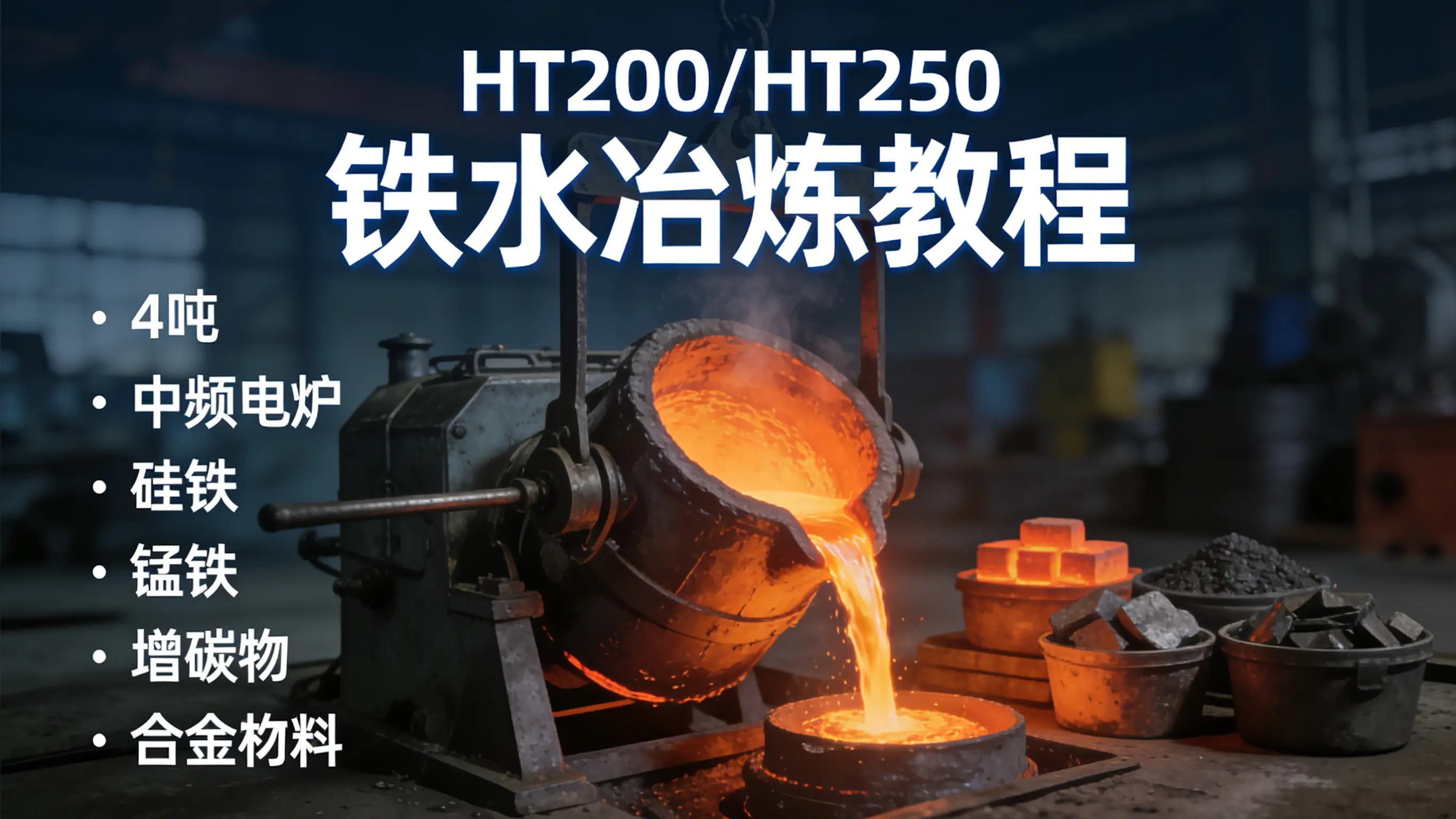 中频电炉是HT系列灰铸铁冶炼的常用设备,HT200、HT250作为主流工程铸铁牌号,其铁水成分稳定性直接影响铸件质量。本文针对4吨中频电炉,精简梳理这两种牌号铁水的核心冶炼要点,重点明确硅铁、锰铁、增碳剂的添加计算及补料方法,方便一线从业者快速参考实操。